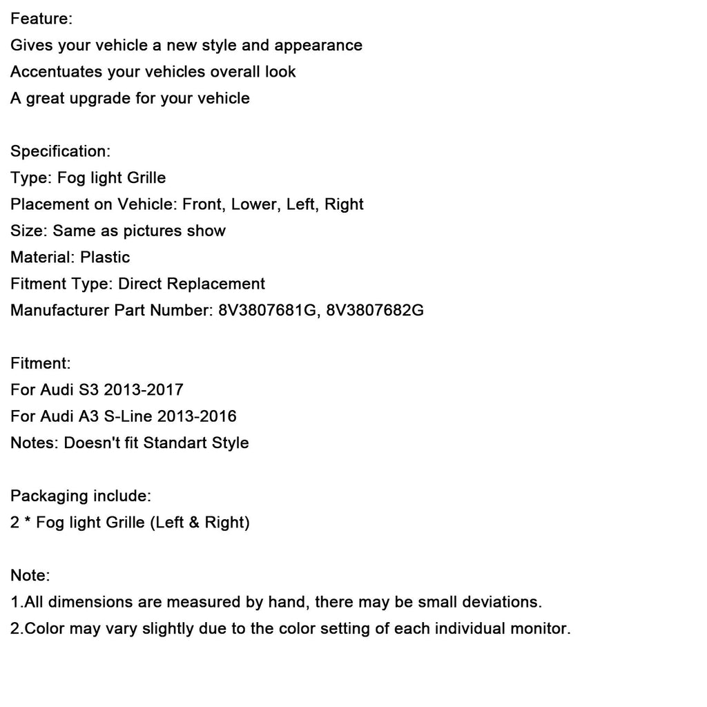 Grille de protection antibrouillard pour pare-chocs avant inférieur, compatible avec AUDI A3 S3 S-Line 2013-2016