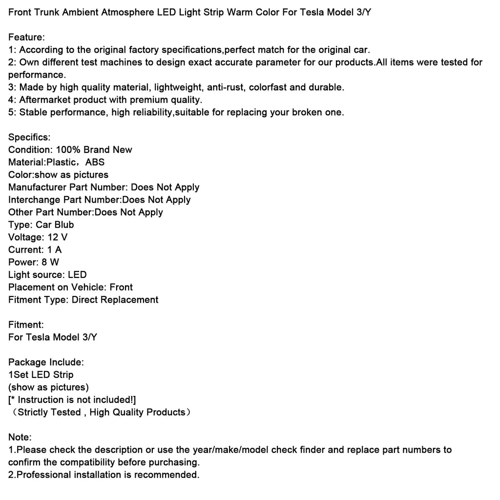 Bande lumineuse LED d'ambiance pour coffre avant, couleur chaude, pour Tesla Model 3/Y
