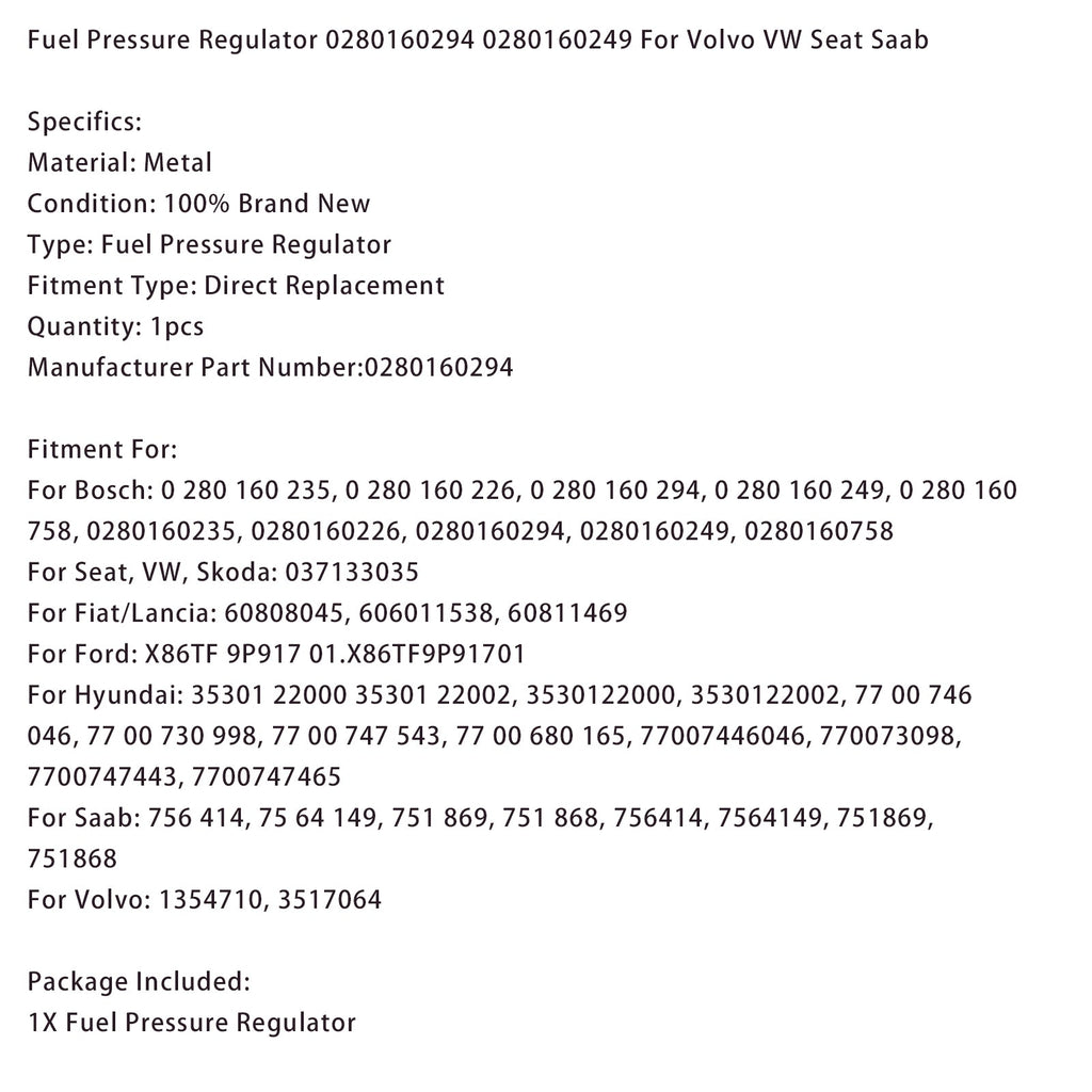 Régulateur de pression de carburant 0280160294 0280160249 pour Volvo VW Seat Saab