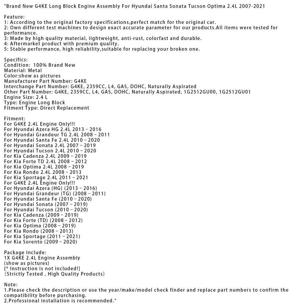 Autre numéro de pièce : G4KE, 2 359 cc, L4, GAZ, DOHC, aspiration naturelle, 1G2512GU00, 1G2512GU01