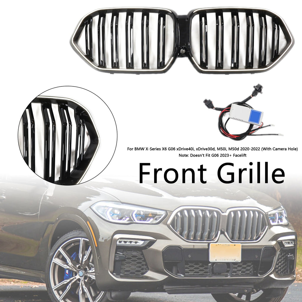 Grille de pare-chocs avant noire brillante pour BMW X6 G06 M50i 2020-2022 avec trou pour caméra