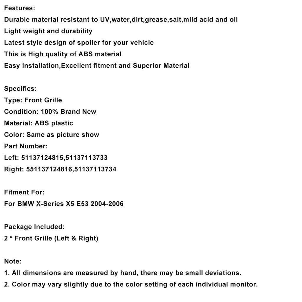 Calandre avant noire brillante compatible avec BMW Série X X5 E53 2004-2006
