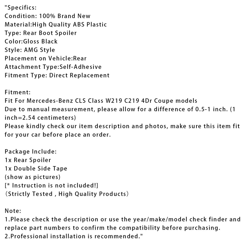 Becquet de coffre arrière noir brillant pour Mercedes-Benz Classe CLS W219 AMG Style 2005-2010