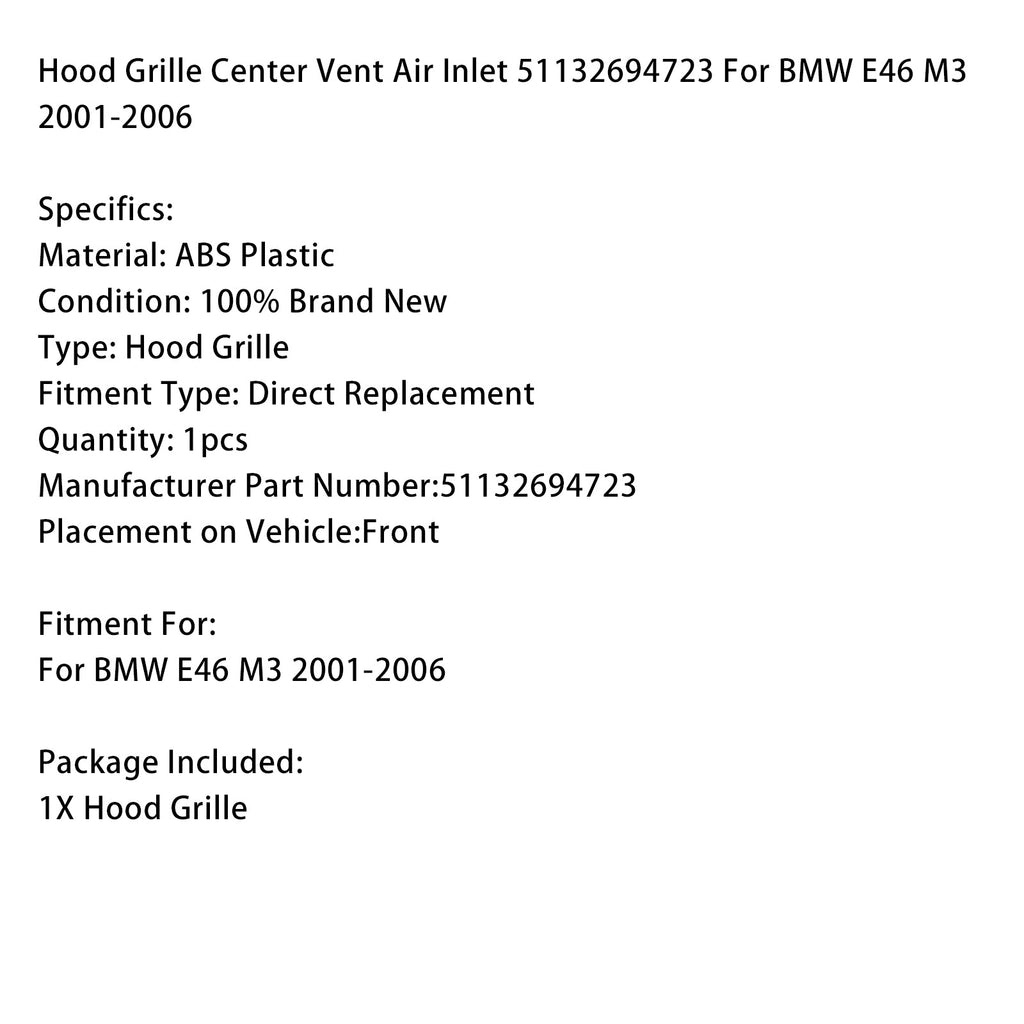 Grille de capot, grille d'aération centrale, entrée d'air 51132694723 pour BMW E46 M3 2001-2006
