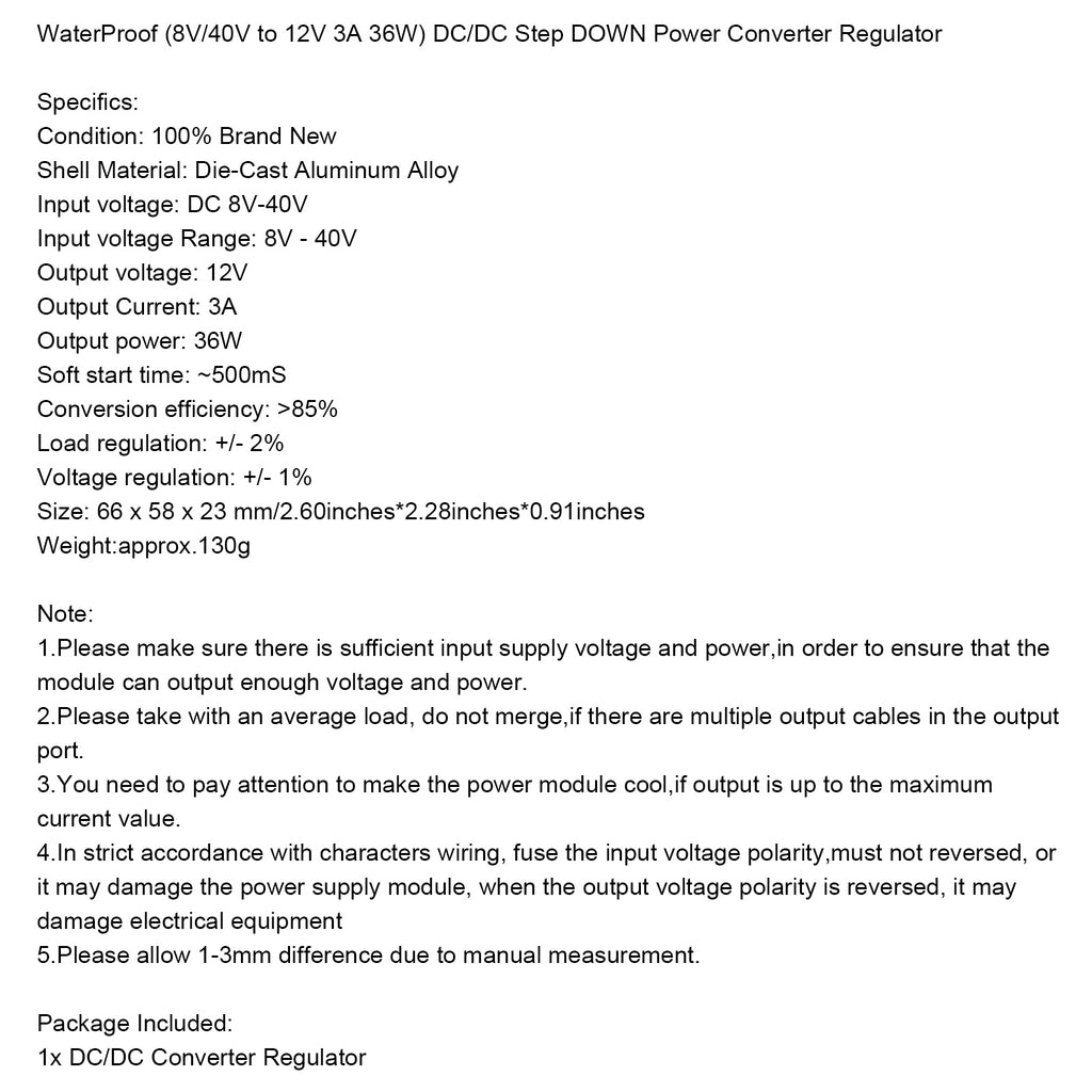 WaterProof (8V/40V to 12V 3A 36W) DC/DC Step DOWN Power Converter Regulator