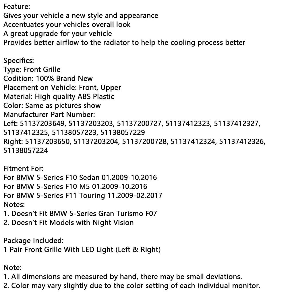 1 paire de calandre avant avec éclairage LED (gauche et droite)