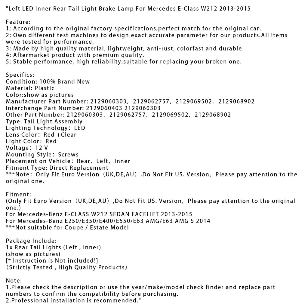 Feu stop intérieur gauche à LED compatible avec Mercedes Classe E W212 2013-2015