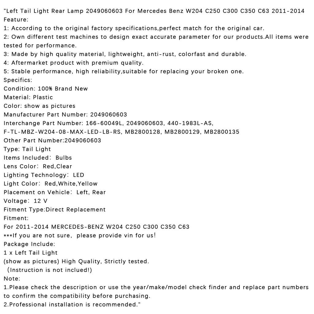 Numéro de pièce interchangeable : 166-60049L, 2049060603, 440-1983L-AS, F-TL-MBZ-W204-08-MAX-LED-LB-RS, MB2800128, MB2800129, MB2800135