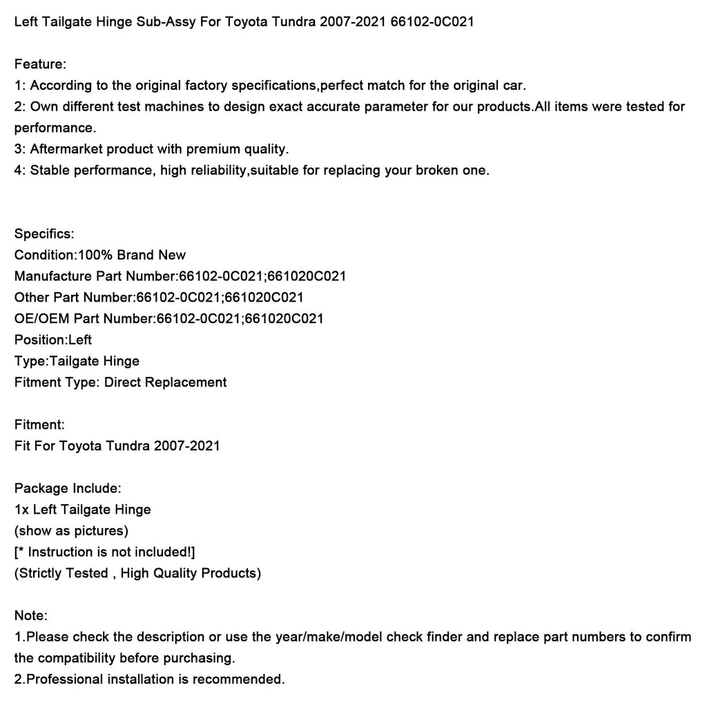 Charnière de hayon gauche (sous-ensemble) compatible avec Toyota Tundra 2007-2021 66102-0C02 1