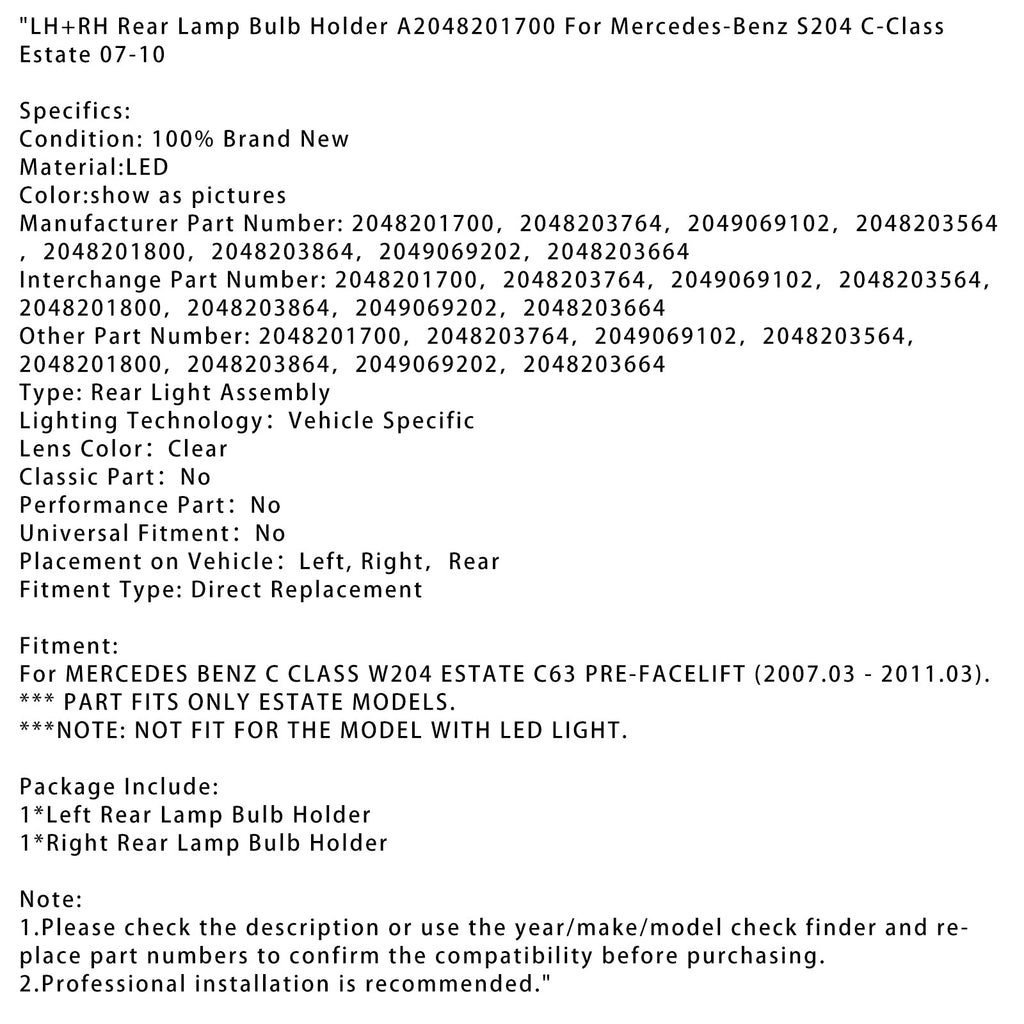 Support d'ampoule de feu arrière gauche et droit A2048201700 pour Mercedes-Benz S204 Classe C Break 2007-2010
