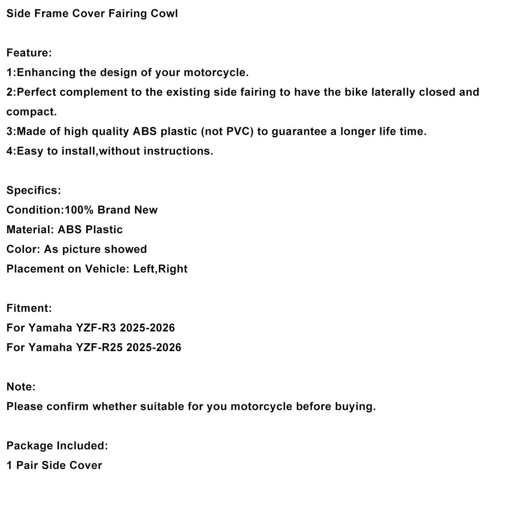 Carénage latéral compatible avec Yamaha YZF-R3 R25 2025-2026