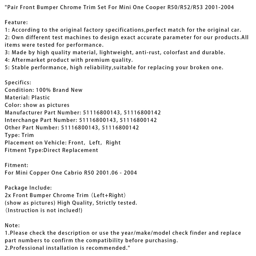 Paire de garnitures chromées pour pare-chocs avant pour Mini One Cooper R50/R52/R53 2001-2004