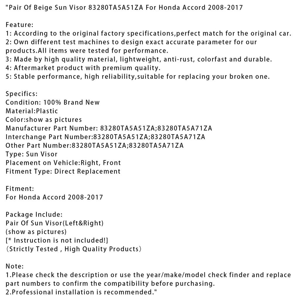 Paire de pare-soleil beiges 83280TA5A51ZA compatibles avec Honda Accord 2008-2017
