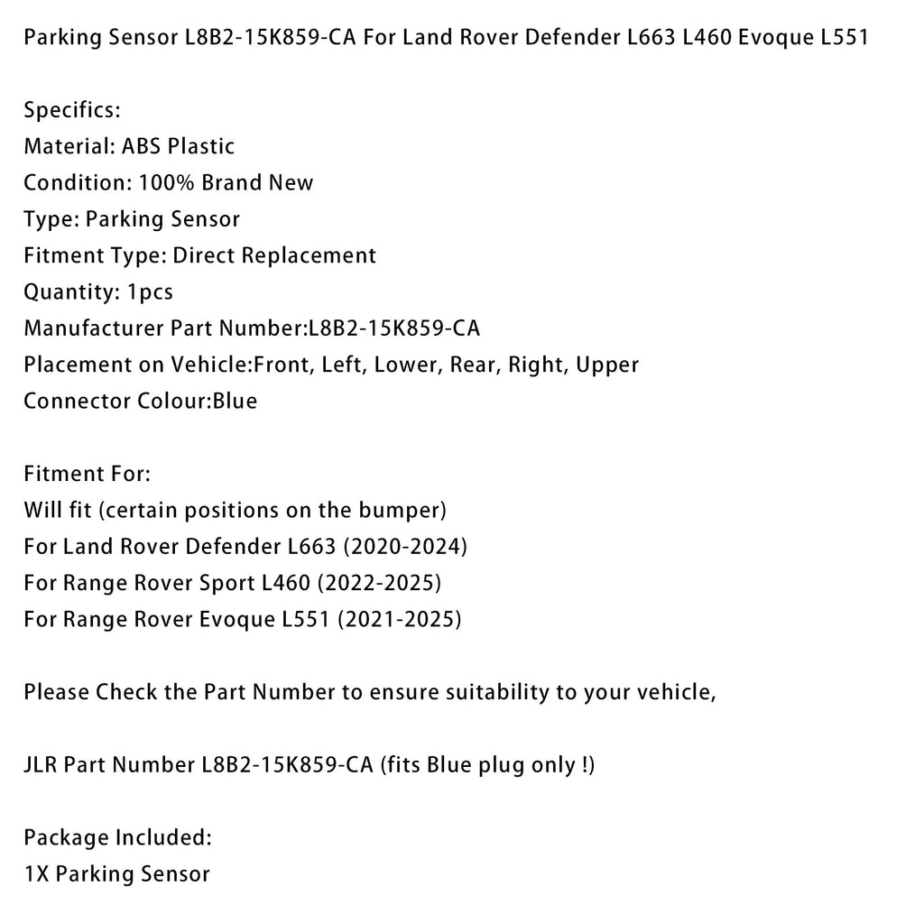 Capteur de stationnement L8B2-15K859-CA pour Land Rover Defender L663 L460 Evoque L551