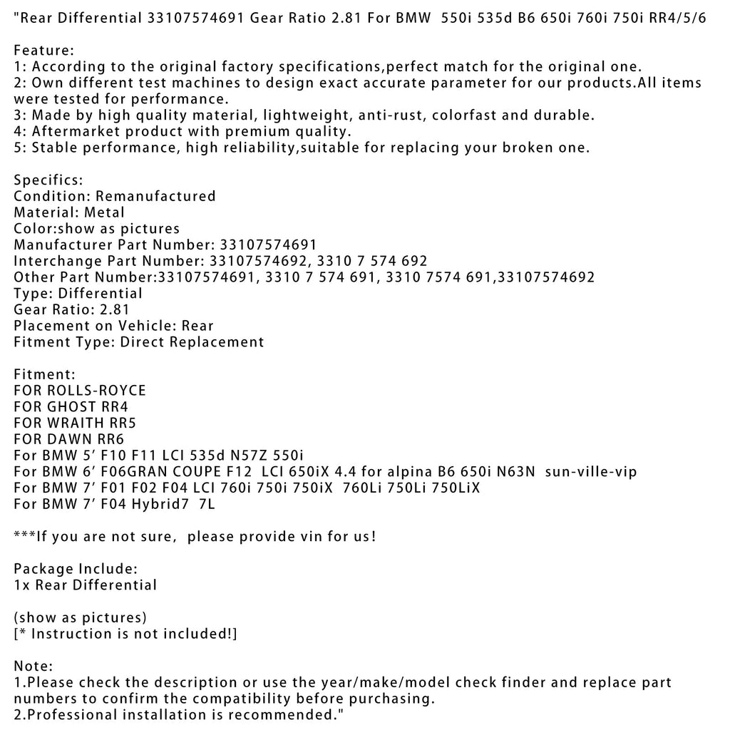 Différentiel arrière 33107574691 Rapport de démultiplication 2,81 Convient pour BMW 550i 535d B6 650i 760i 750i RR4/5/6