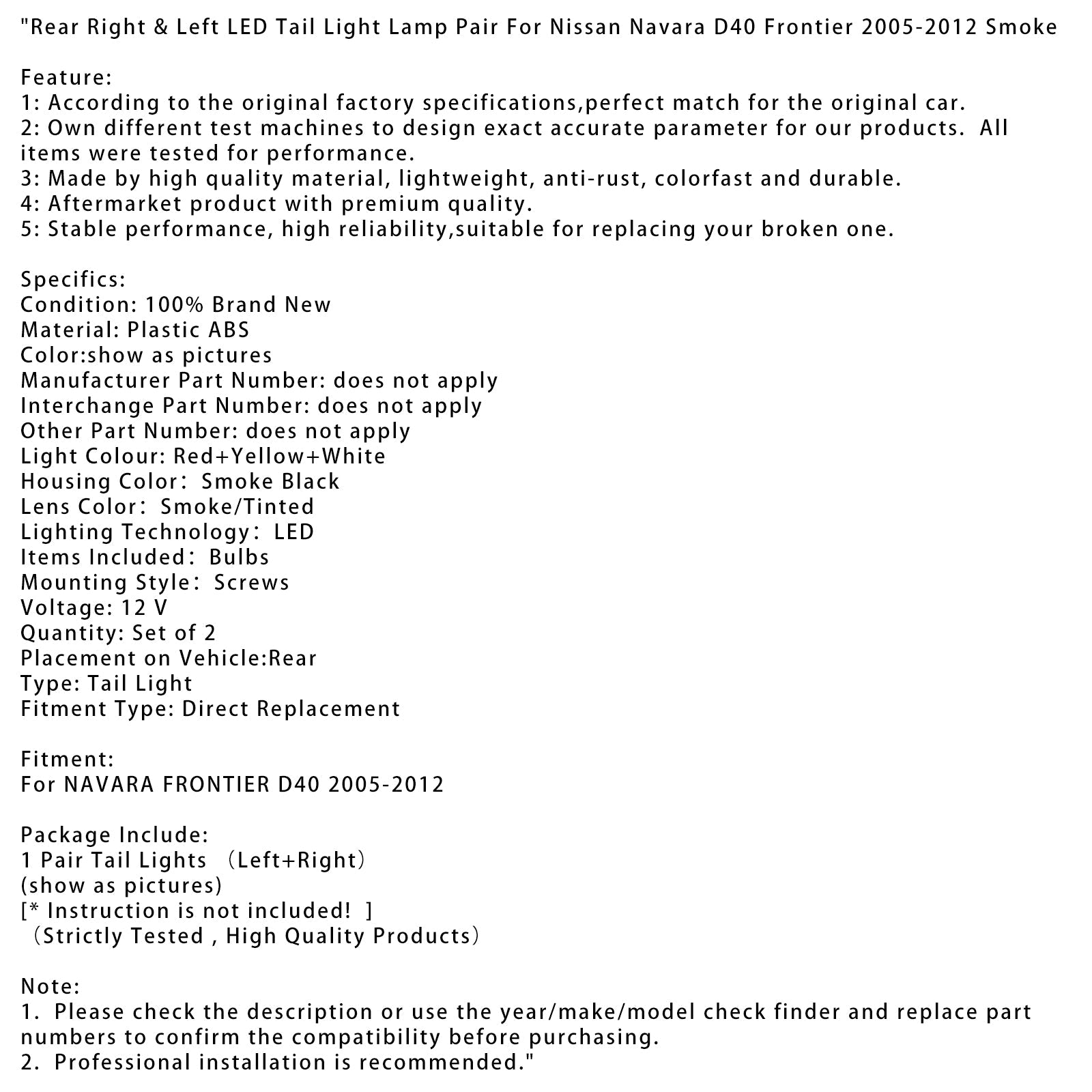 Paire de feux arrière LED droit et gauche pour Nissan Navara D40 Frontier 2005-2012, fumés