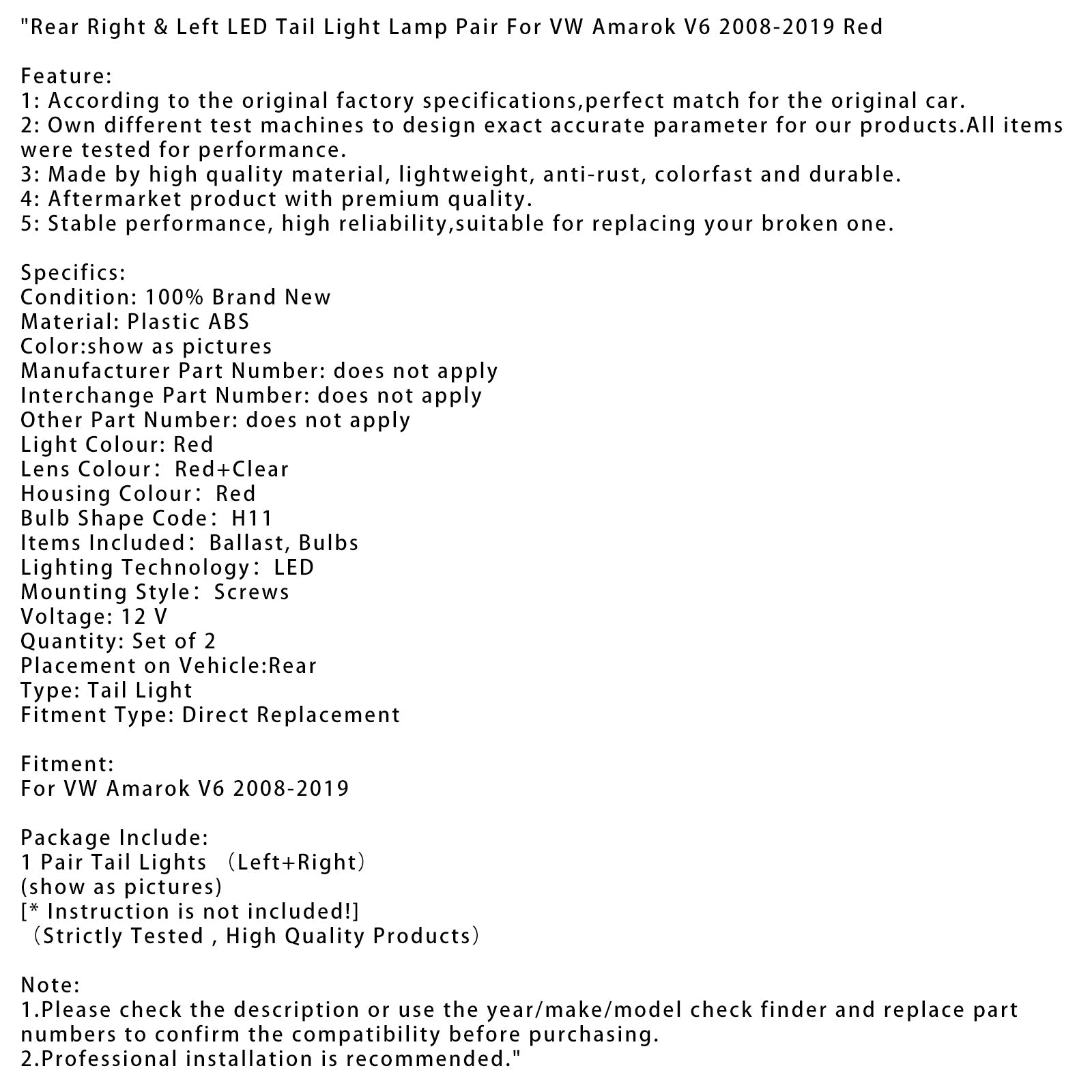 Paire de feux arrière à LED droit et gauche pour VW Amarok V6 2008-2019 Rouge