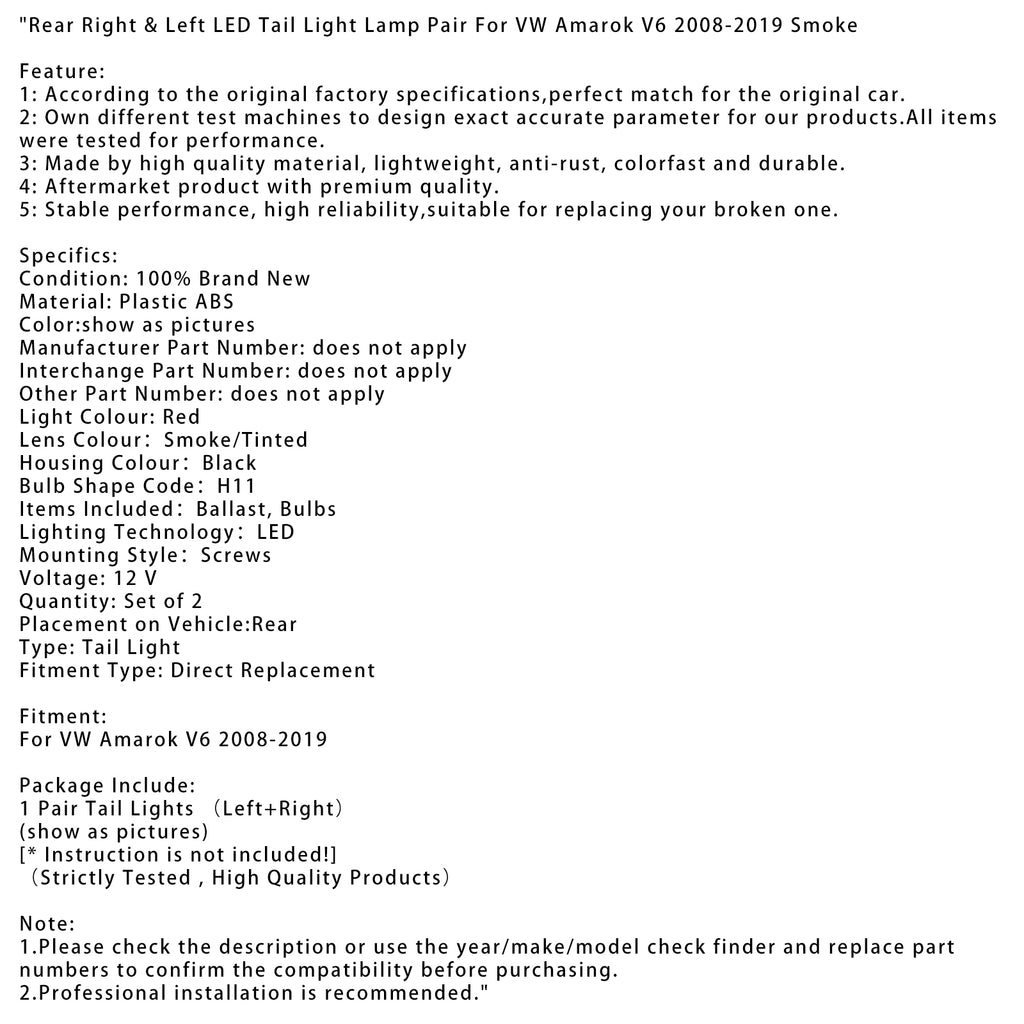 Paire de feux arrière à LED arrière droit et gauche pour VW Amarok V6 2008-2019, fumés