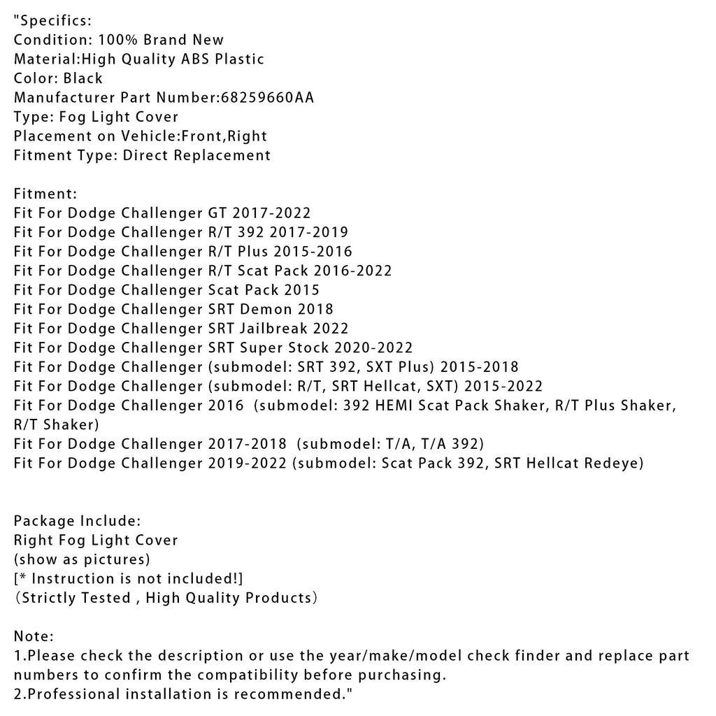 Cache feu antibrouillard droit pour Dodge Challenger 2015-2022 68259660AA