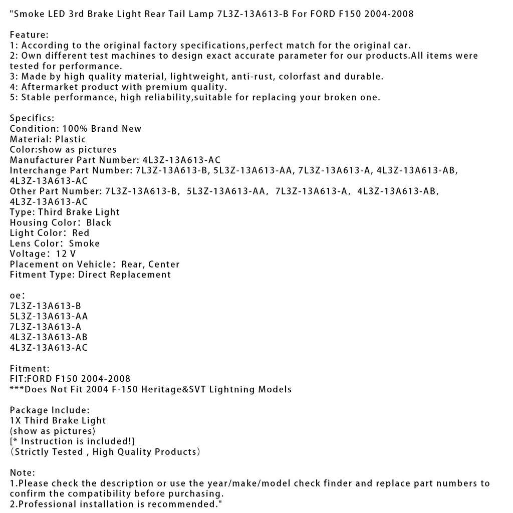 Feu stop arrière à LED fumé 7L3Z-13A613-B pour Ford F150 2004-2008