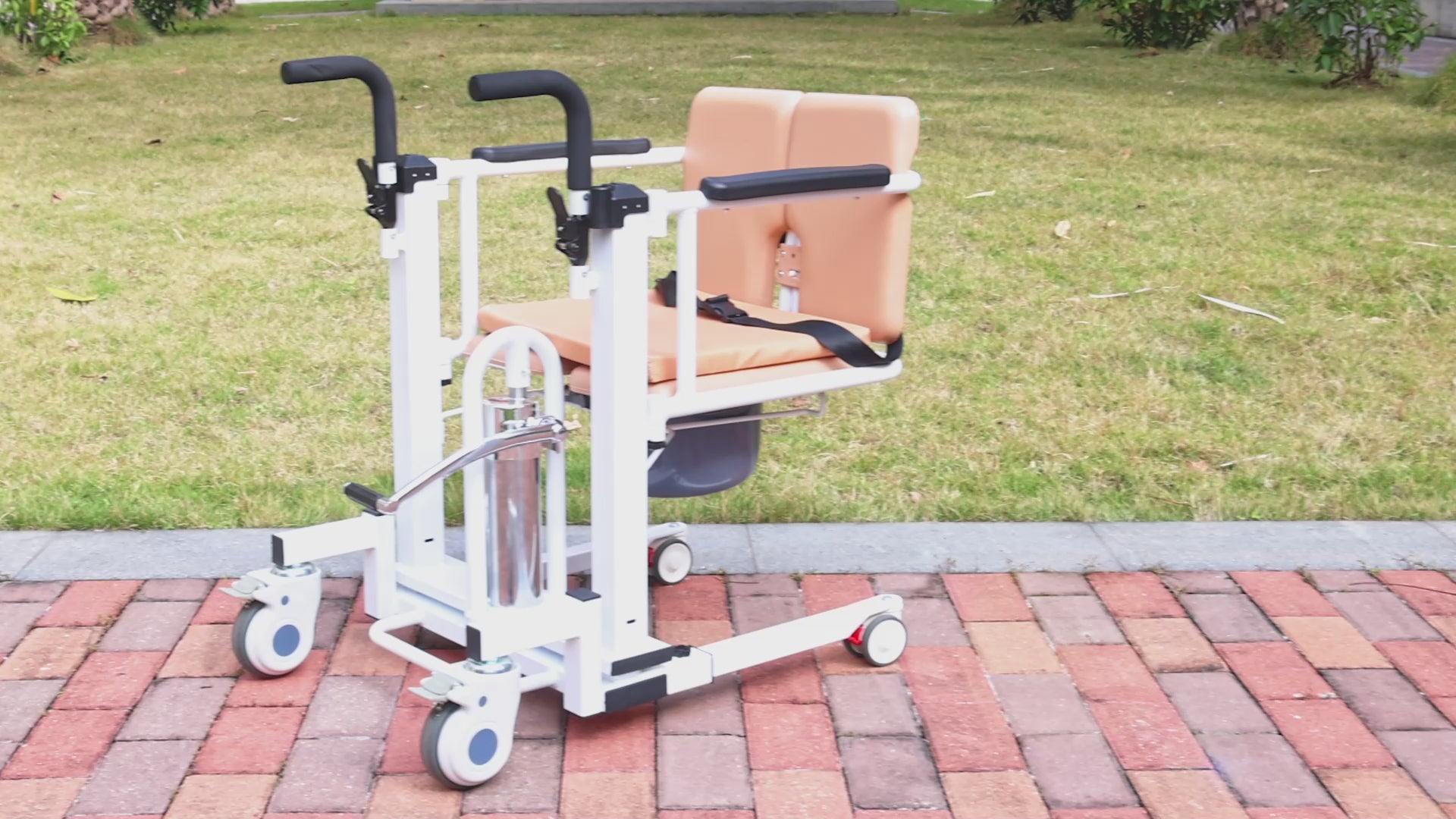 Ce fauteuil roulant élévateur est un appareil révolutionnaire conçu pour transporter les patients à mobilité réduite de manière pratique et sécurisée à leur domicile ou en établissement de soins. Polyvalent et durable, il est confortable pour le patient et facile d'utilisation pour le personnel soignant. Son installation sans outil, sa légèreté et sa portabilité en font un choix idéal pour les soins à domicile. Le lève-personne de transfert offre un confort accru pour vos déplacements dans votre maison ou votre établissement. Grâce à ce lève-personne, vous pouvez passer plus de temps dans votre salon avec votre famille sans vous soucier des déplacements. Oubliez les repas au lit et retrouvez vos anciennes habitudes en mangeant dans votre salle à manger avec vos proches. Le lève-personne est équipé de doubles verrouillages avant et arrière pour garantir la sécurité et prévenir les accidents pendant le transport. La hauteur de l'appareil est réglable pour s'adapter aux différences de hauteur pendant le transport. Le siège de l'appareil se replie à 90° pour un transfert en toute sécurité de la position assise au fauteuil. Il est également doté de poignées ergonomiques offrant une prise en main confortable et sûre, pour vous ou votre soignant. De plus, il est doté d'une découpe pour l'utilisation des toilettes et d'une cuvette d'aisance portable. Conçu pour vous permettre de vous déplacer librement dans votre maison ou tout autre lieu, il simplifie la vie de tous. Retrouvez votre liberté et déplacez-vous sans effort d'une pièce à l'autre grâce à cet appareil innovant.