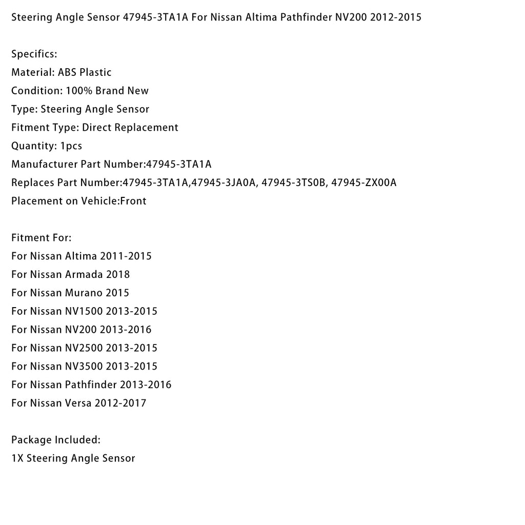 Capteur d'angle de braquage 47945-3TA1A pour Nissan Altima Pathfinder NV200 2012-2015