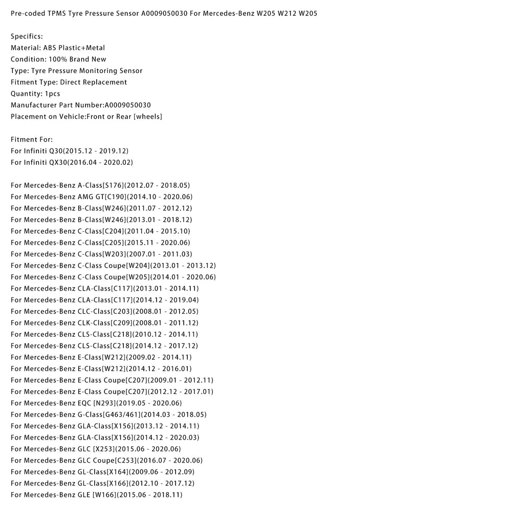 Capteur de pression des pneus TPMS pré-codé A0009050030 pour Mercedes-Benz W205 W212 W205
