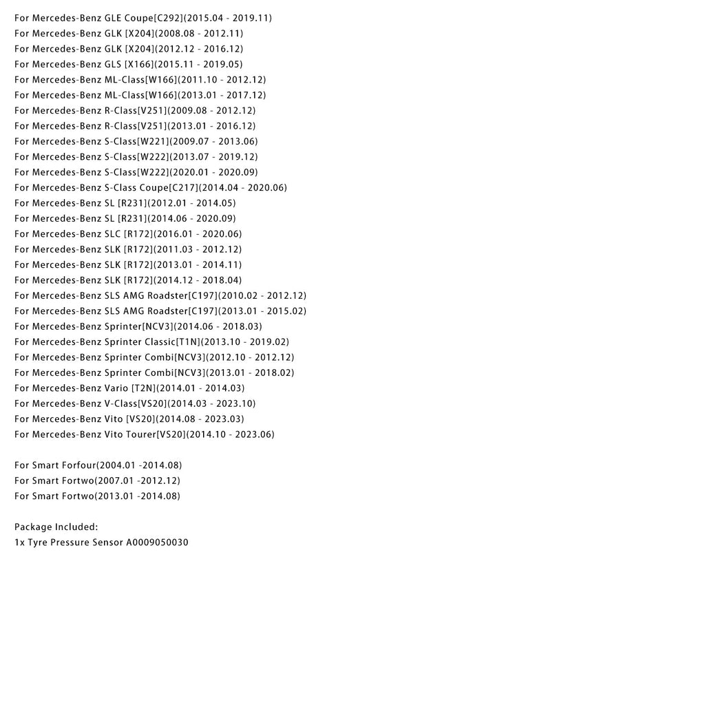 Capteur de pression des pneus TPMS A0009050030 pour Mercedes-Benz W205 W212 W205
