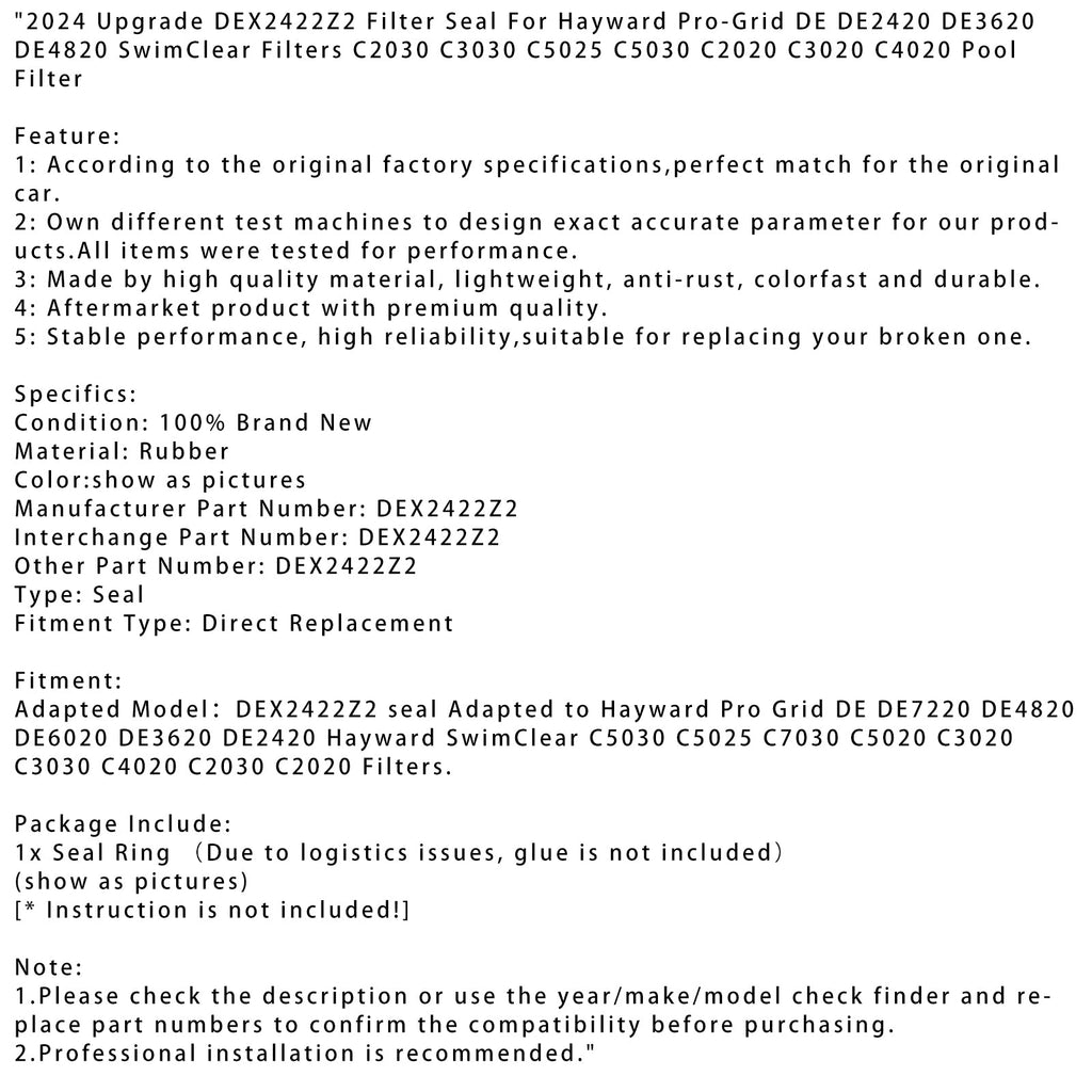Modèle adapté : joint DEX2422Z2 adapté aux filtres Hayward Pro Grid DE DE7220 DE4820 DE6020 DE3620 DE2420 Hayward SwimClear C5030 C5025 C7030 C5020 C3020 C3030 C4020 C2030 C2020.