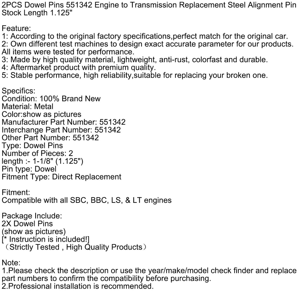 2-delni paket 551342 sredinskih zatičev, zamenjava motorja in menjalnika, jekleni poravnalni zatič, standardna dolžina : 1.125 po