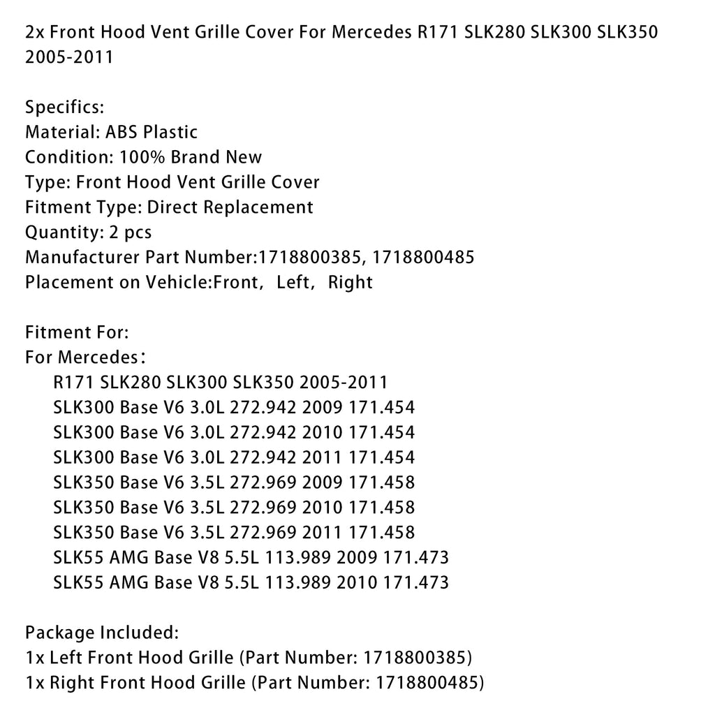 Komplet 2 prezračevalnih rešetk na sprednjem pokrovu motorja za Mercedes R171 SLK280 SLK300 SLK350 2005-2011