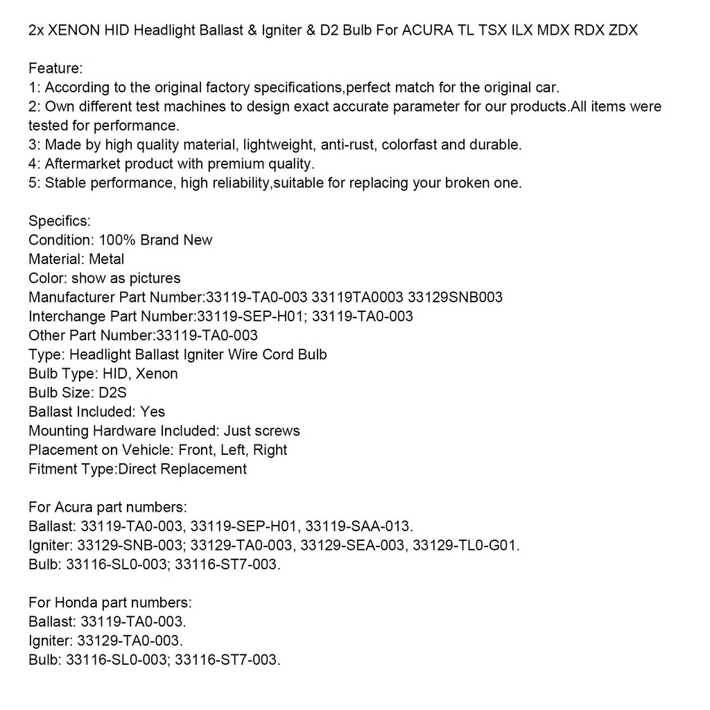 2 predstikalna naprava za ksenonske HID žaromete, vžigalne naprave in žarnice D2 za Acura TL TSX ILX MDx RDX zdx