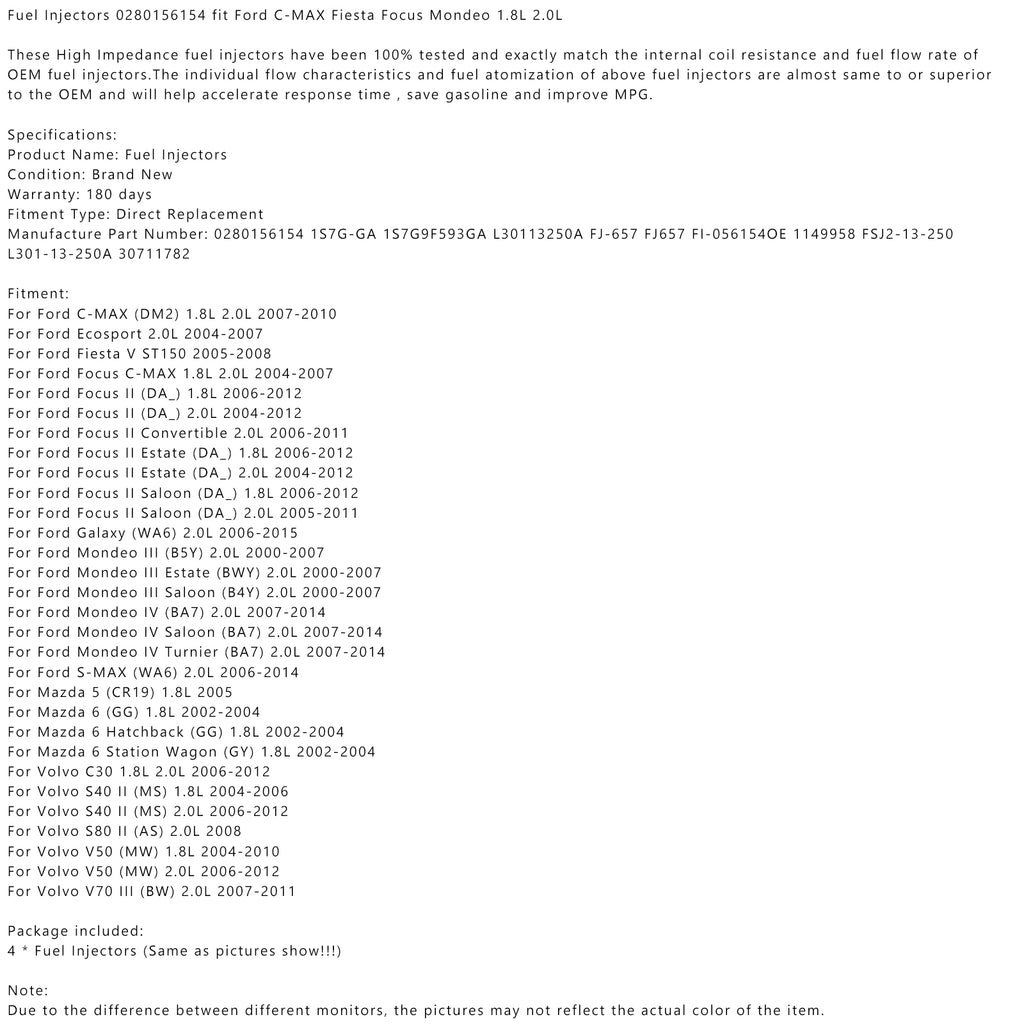 Vbrizgalniki goriva 0280156154 za Ford C-MAX Fiesta Focus Mondeo 1.8L 2.0L