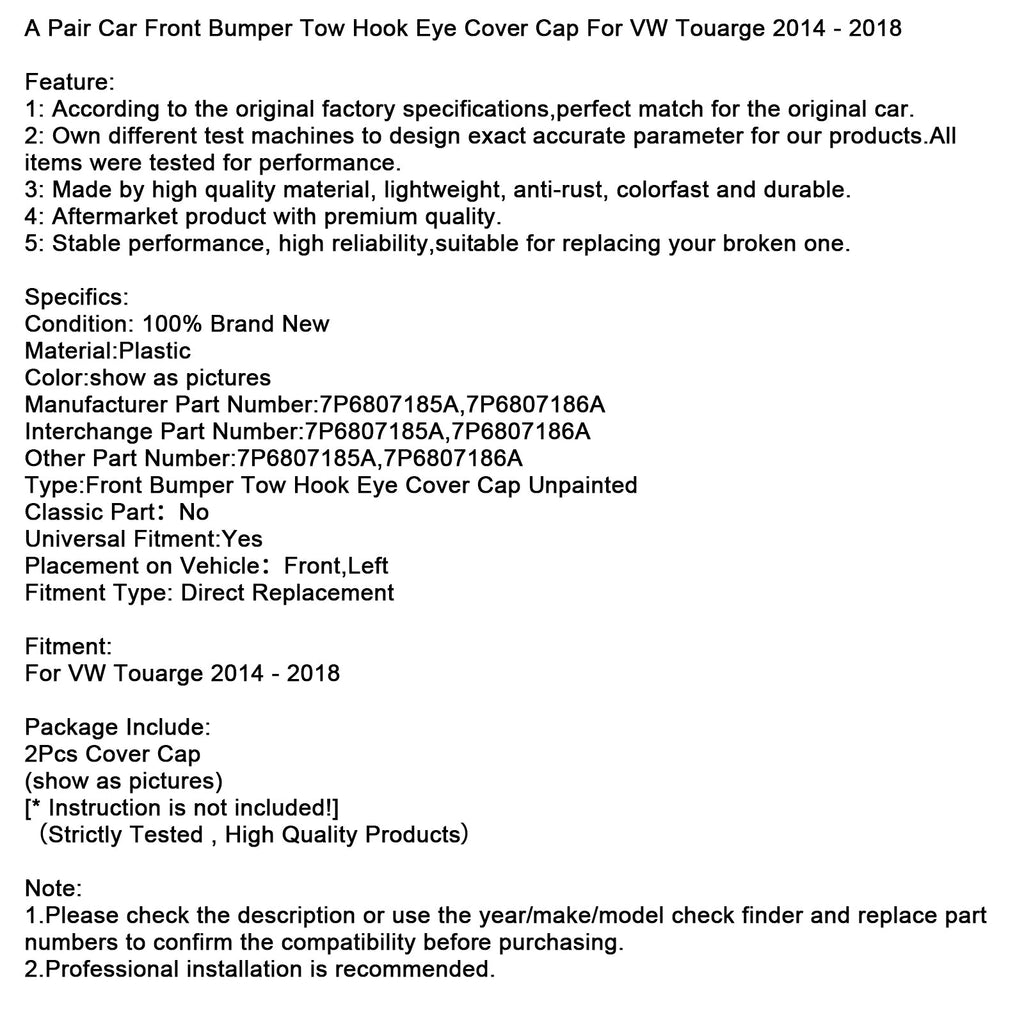 Par pokrovov za vlečno kljuko za sprednji odbijač za VW Touarge 2014-2018
