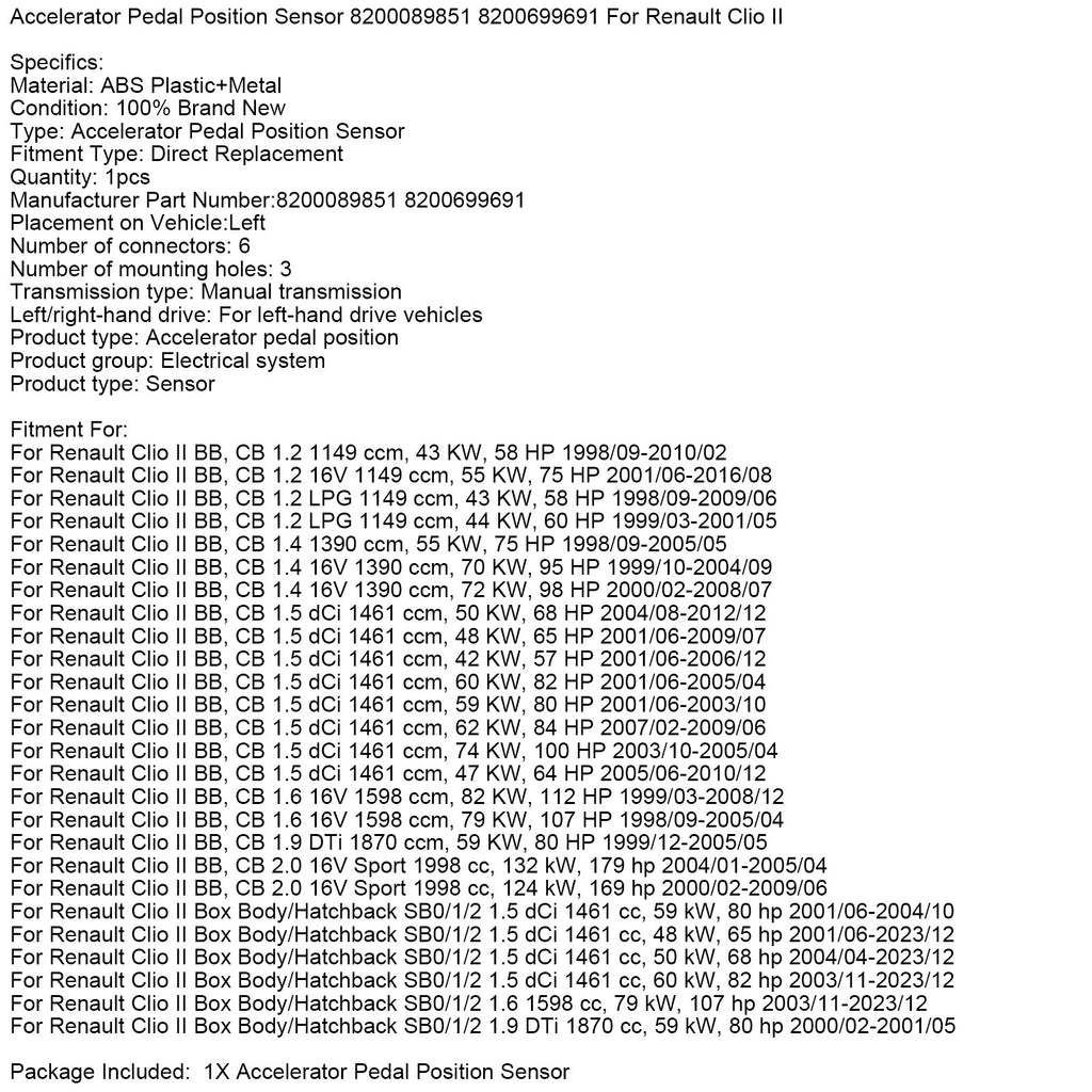 Senzor položaja pedala za plin 8200089851 8200699691 za Renault Clio II