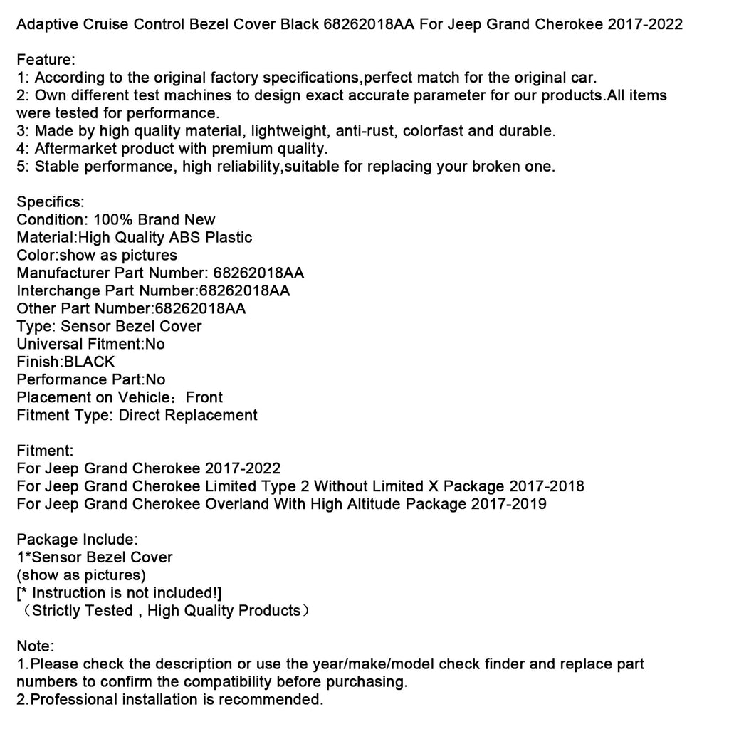 Črna zaščitna folija za prilagodljivi tempomat 68262018AA za Jeep Grand Cherokee 2017-2022