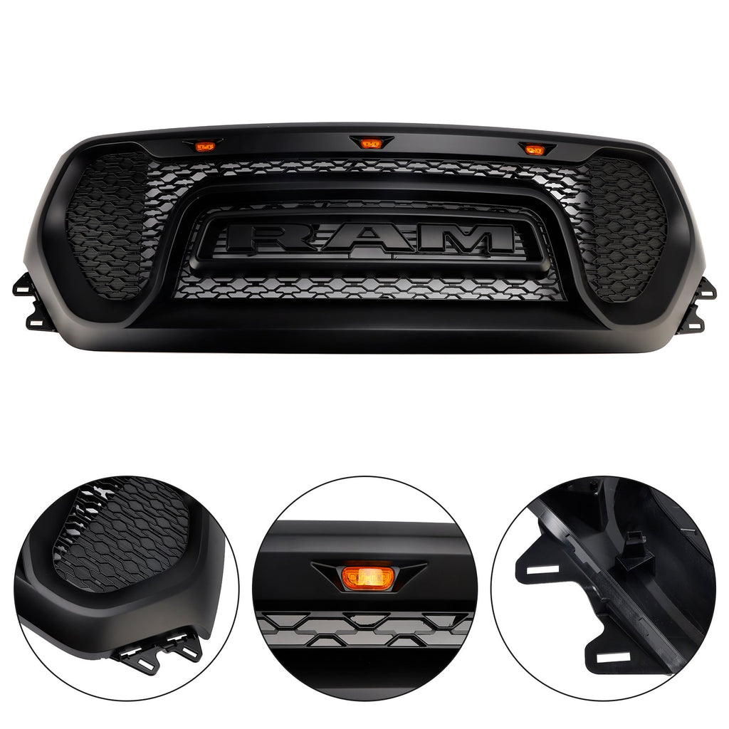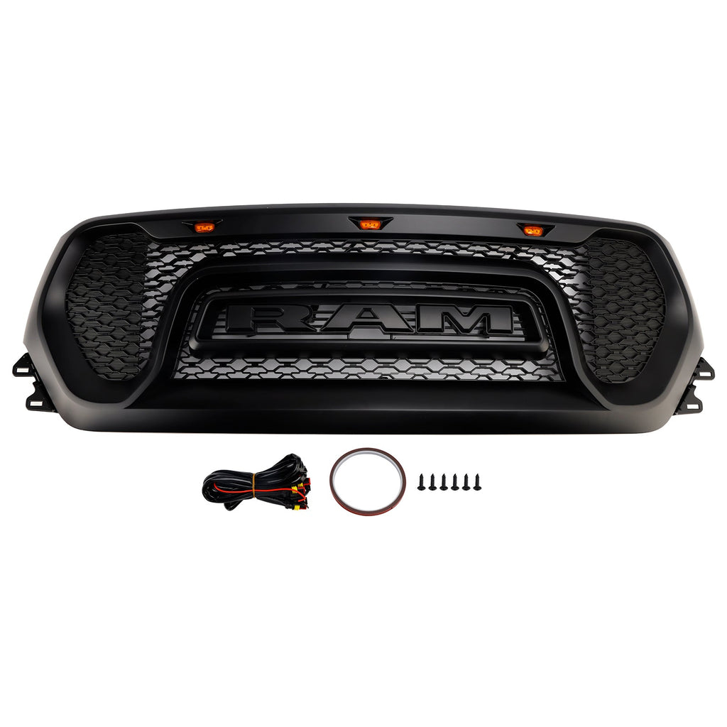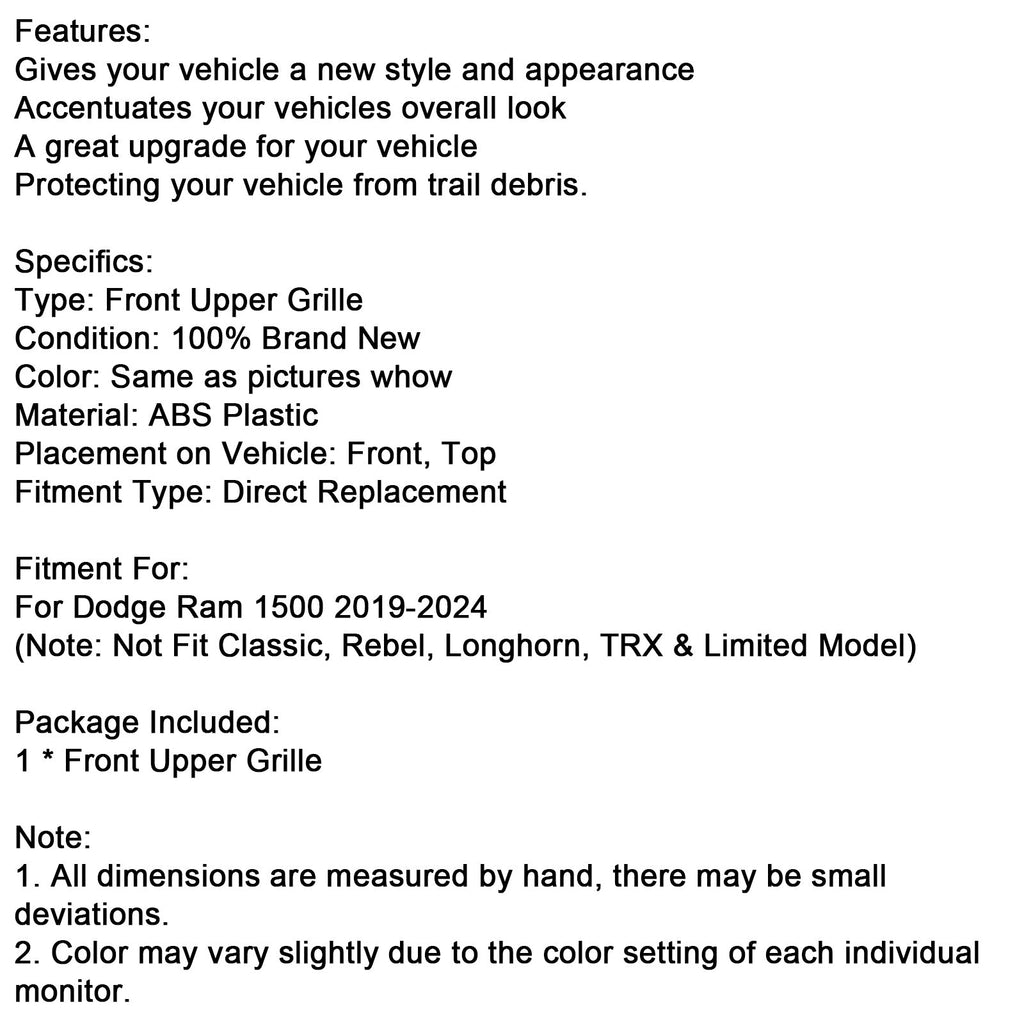 Črna zgornja sprednja maska s satjastim vzorcem, združljiva z Dodge Ram 1500 2019-2024