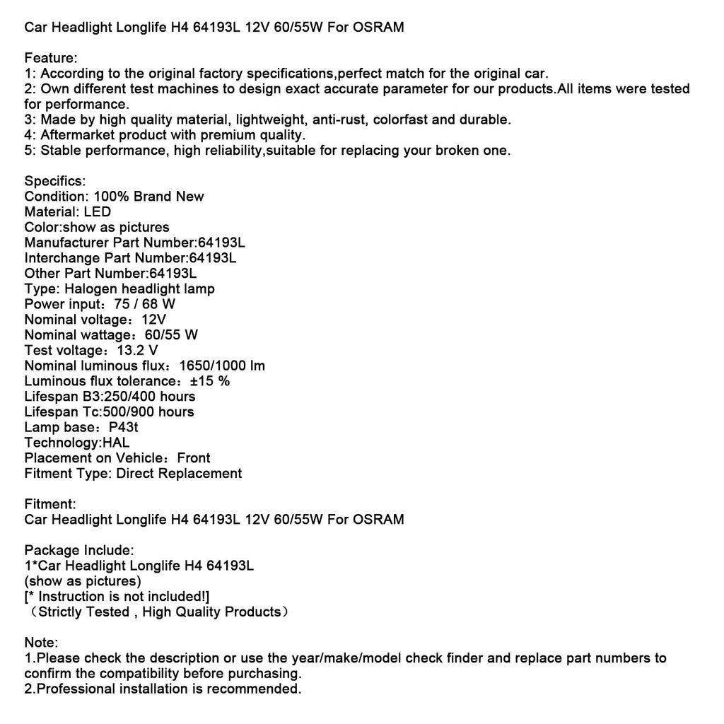 1 x H4 64193L žaromet za avtomobile z dolgo življenjsko dobo