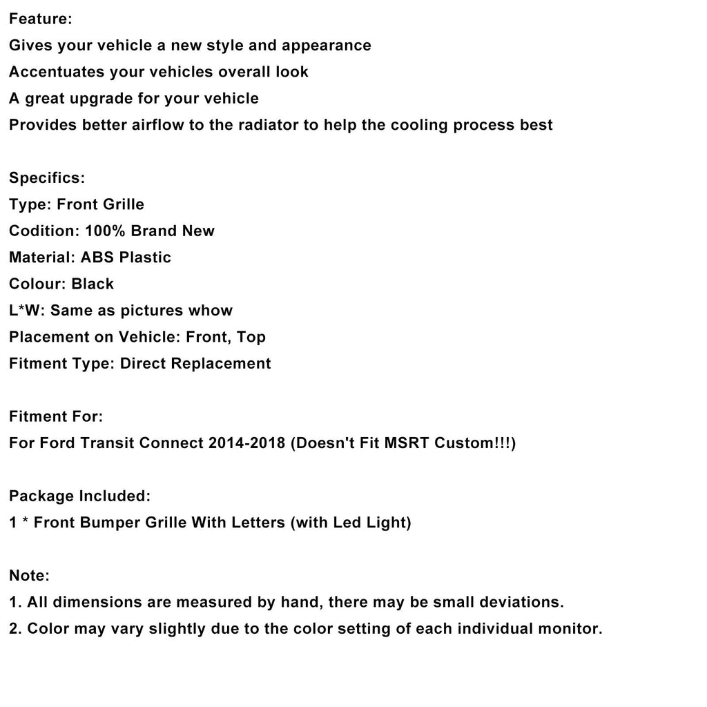 Črna maska sprednjega odbijača, združljiva s Ford Transit Connect 2014-2018 z LED žarometi