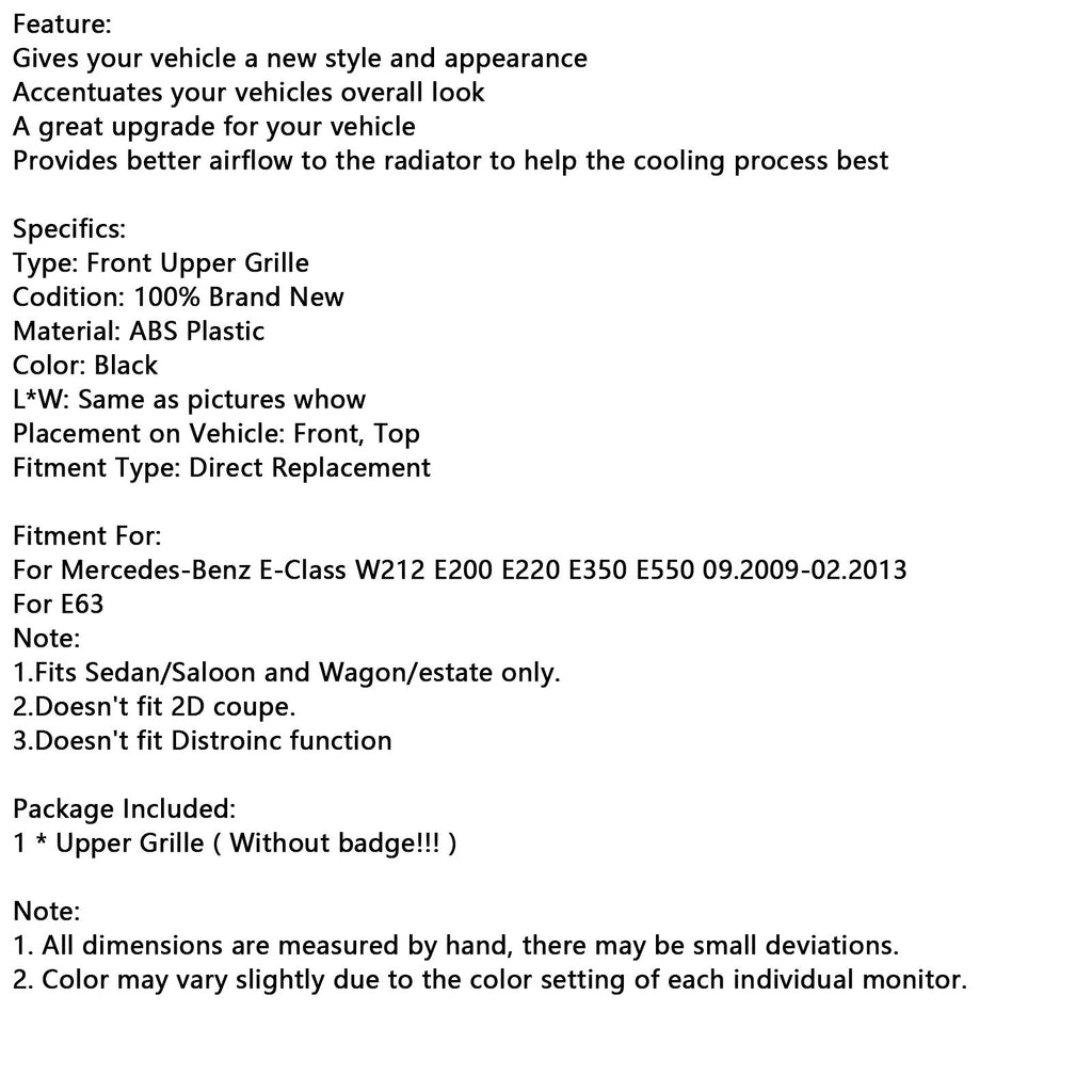 Črna sprednja maska za Mercedes-Benz razreda E W212 E350 E550 2010–2013