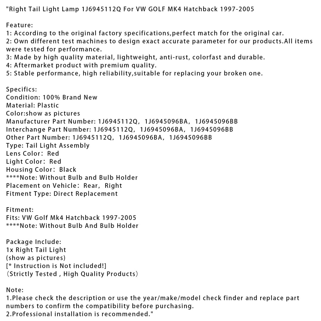 Desna zadnja luč 1J6945112Q združljiva z VW Golf MK4 Hatchback 1997-2005