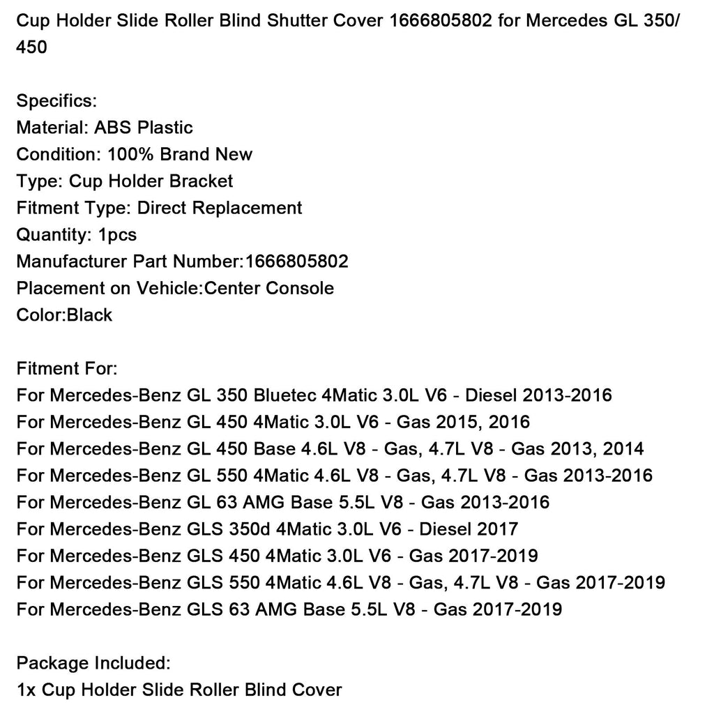 Drsni roletni pokrov za držalo za skodelico 1666805802 za Mercedes GL 350/450