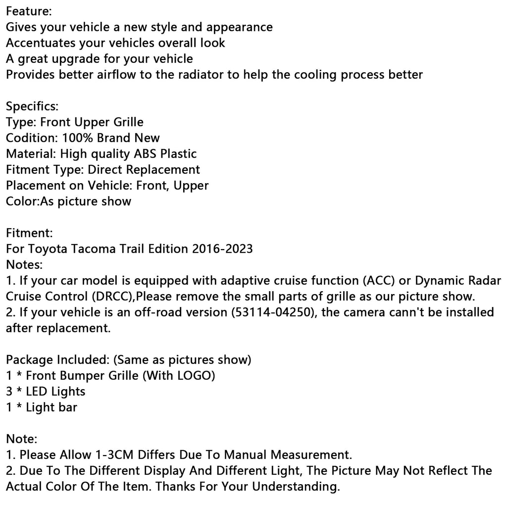 Sprednja maska odbijača za Toyota Tacoma 2016-2023 z LED osvetlitvijo