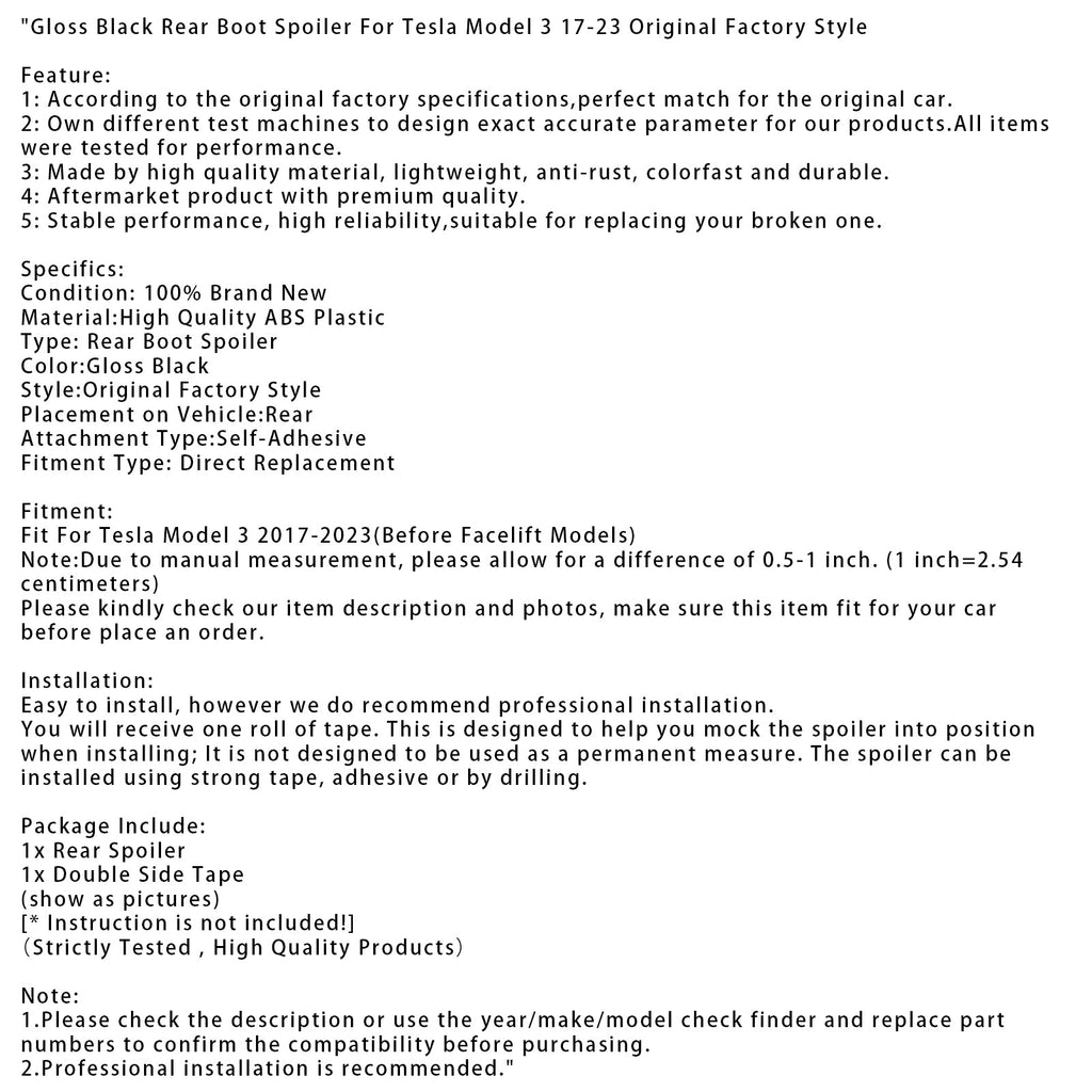 Sijajno črn zadnji spojler za Tesla Model 3 17-23, OEM stil