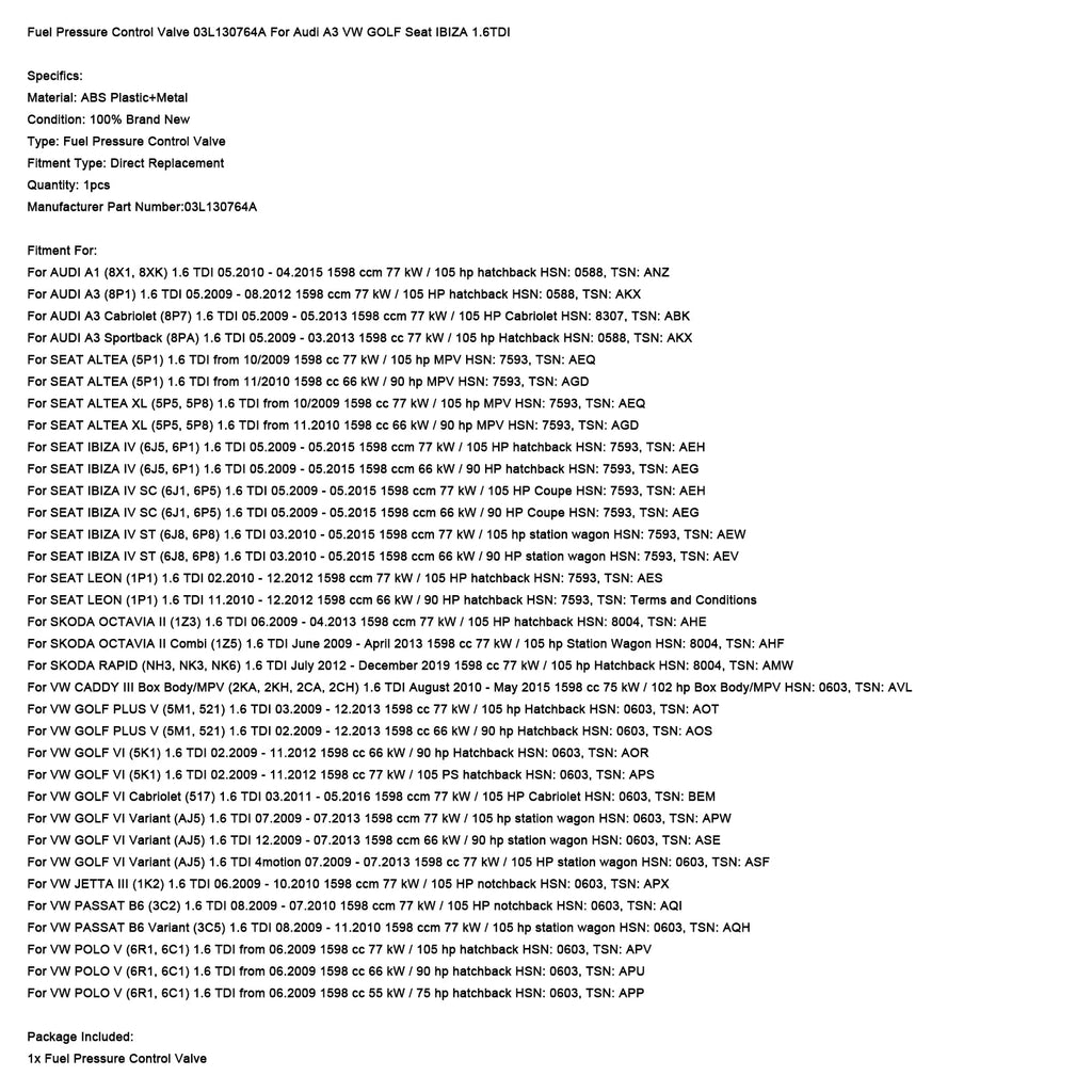 Regulator tlaka goriva 03L130764A za Audi A3, VW Golf, Seat Ibiza 1.6TDI