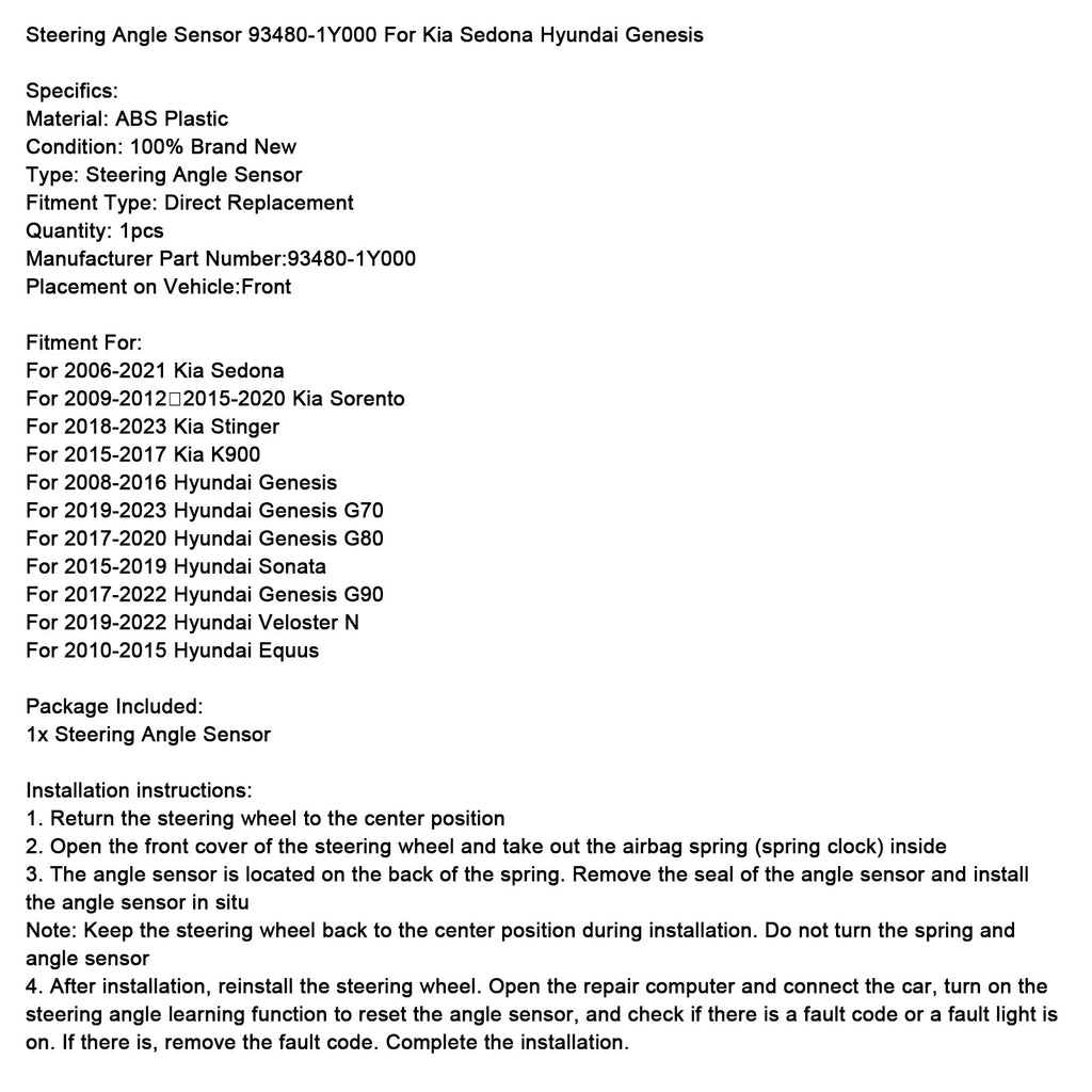 Senzor kota krmiljenja 93480-1Y000 za Kia Sedona Hyundai Genesis