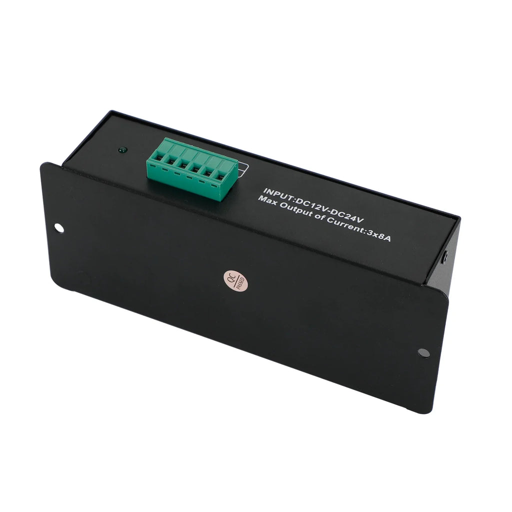 Ta DMX512 dekoder uporablja napredno mikrokrmilno enoto in lahko sprejema standardni digitalni krmilni signal DMX-512, ki se pogosto uporablja mednarodno. Signal spremeni v krmilni signal PWM za krmiljenje LED luči. Prav tako ga je mogoče povezati z digitalno DMX konzolo za spreminjanje svetlobe ali posameznega dinamičnega učinka. Poleg tega se lahko, ko dekoder ni povezan z DMX konzolo, uporablja kot sinhroni krmilnik. To pomeni, da lahko sinhrono upravljate število dekoderjev in LED luči.