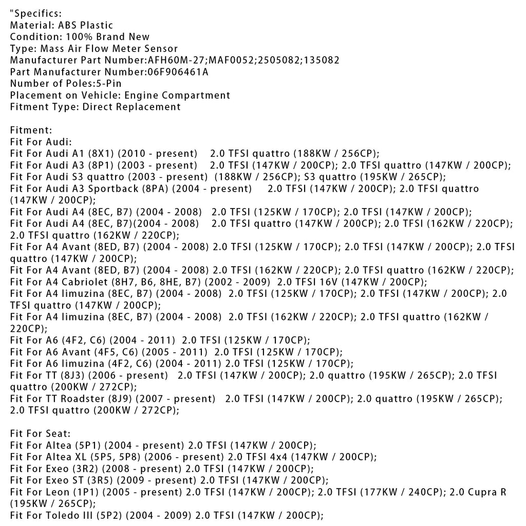 Senzor pretoka zraka za Audi A4 B7 S3 TT VW Golf GTI 2.0T 06F906461A