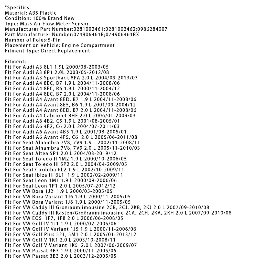 Senzor pretoka zraka za Audi A4 Golf IV VW Passat 3B Jetta III 074906461B