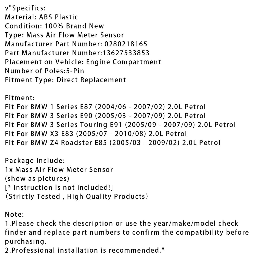 Senzor pretoka zraka za BMW E90 E91 E87 E83 Z4 0280218165